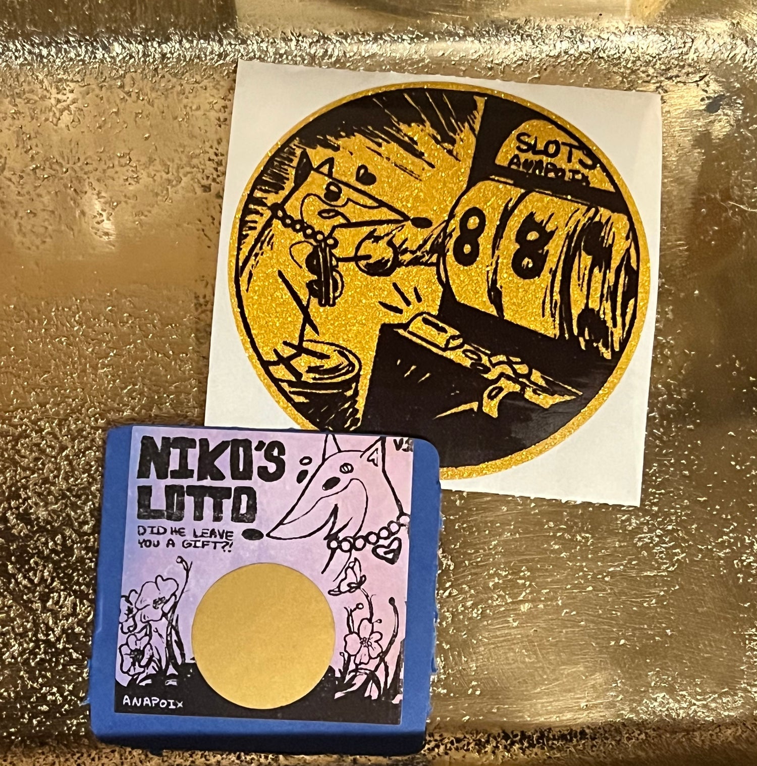 Niko hid something in the dirt! What could it be? Play Niko's Lotto to win ANY FREE sticker from my shop!
